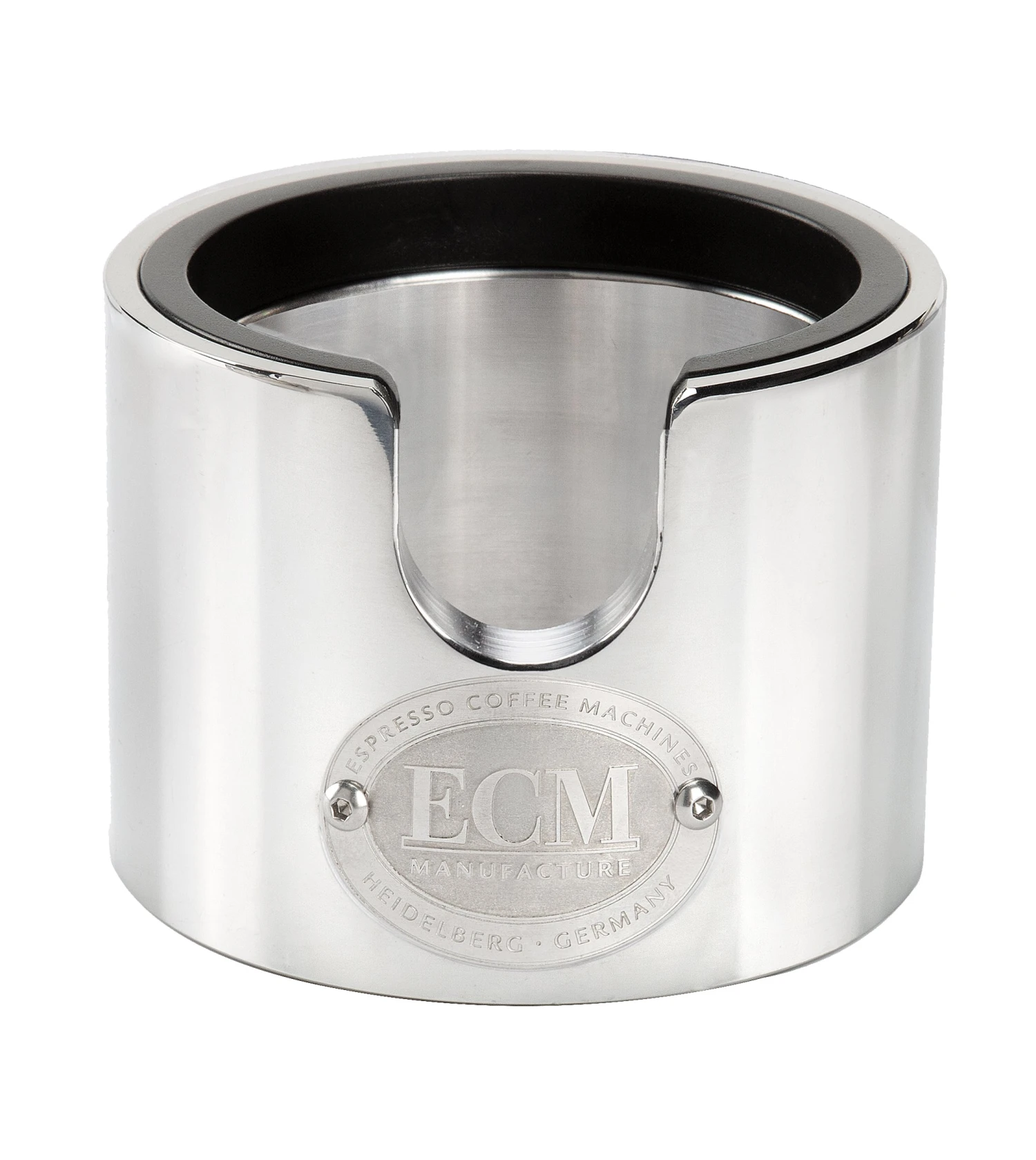 Designed to provide a firm base while tamping, the ECM Tamper Station is fitted with a slot that allows you to rest your portafilter inside of it. This aids into performing an even tamp by keeping the portafilter balanced and level. That station is made entirely from polished aluminum and emblazoned with the ECM logo and the bottom has been machined with a seal to prevent slipping.